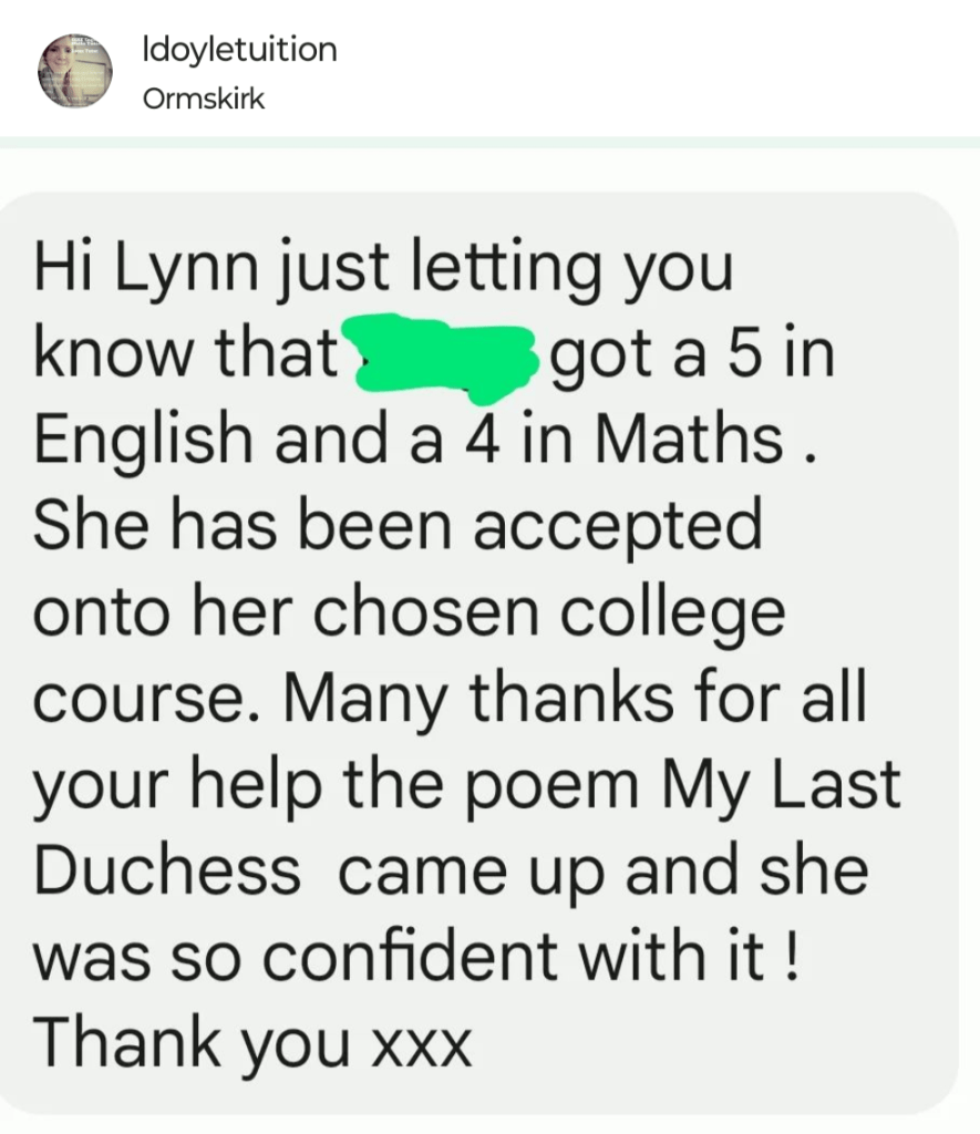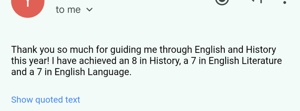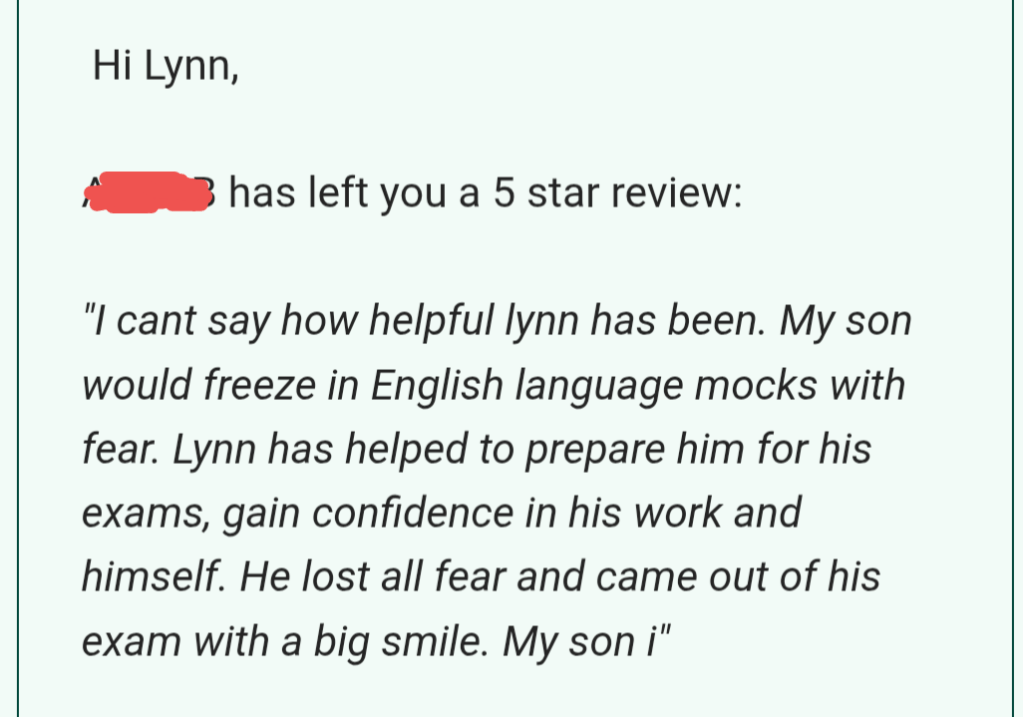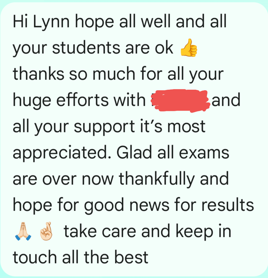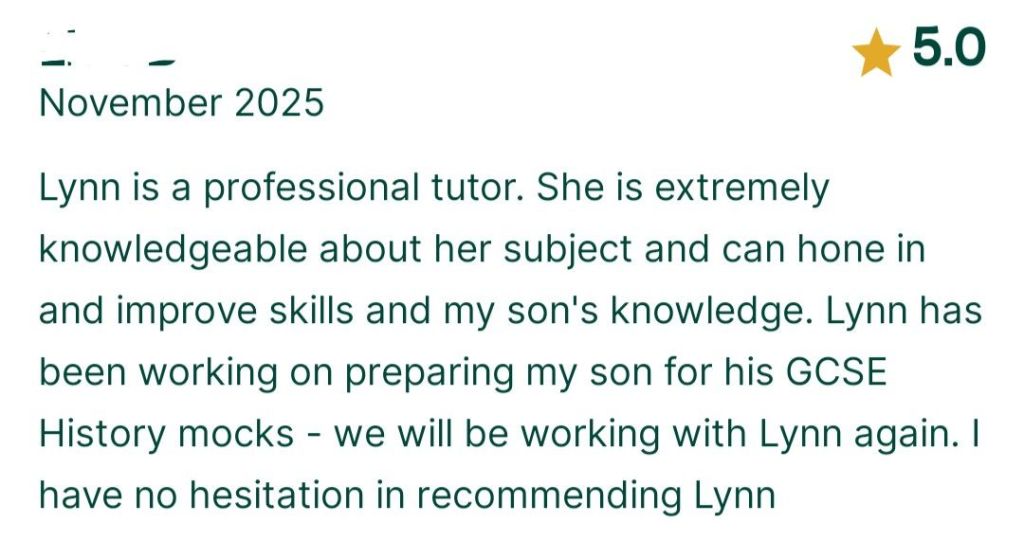 Year 11 Mock revision (I also do teach History, Sociology, RS and Business Studies).August 2025 (support with IGCSE English Language and Literature, IGCSE History and Edexcel RS.Functional Skills Maths, August 2025This was a student struggling to pass his mock exams. His mum contacted me at Easter and after a lot of hard work, he got a G6!! I was so happy for him when I received this message! August GCSE results day 2025August GCSE results day 2025August GCSE results day 2025August GCSE results day 2025August GCSE results day 2025